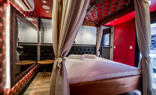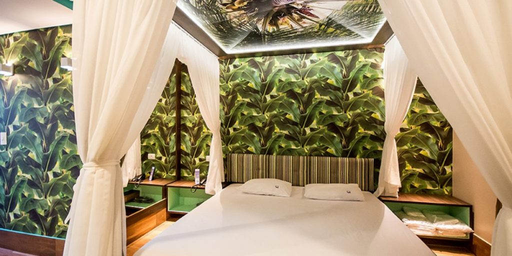 Na Suíte Bali, hidro & sauna decorada e um ambiente com itens que remetem a ilha da Indonésia de Bali, essa suíte possui sauna, hidromassagem dupla, teto solar, cama king size com cortinas em renda, super ducha, iluminação em LED, além da Garagem privativa, ar-condicionado split, canais eróticos, temos internet Wi-Fi, além painel integrado de controle de luzes, som com repertório com mais de 4.000 músicas sendo (8 estilos musicais), 2 TV’s LED 50″, TV por assinatura, secador de cabelos, frigobar, ducha vitrine, secador de cabelo e espelho no teto.